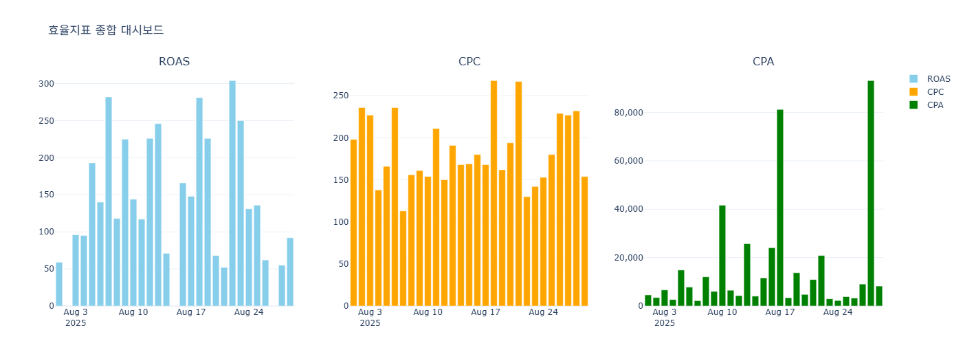 # 효율지표 종합 대시보드 (ROAS, CPC, CPA)