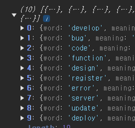 front에서는 단어 목록들을 받아서 localStorage에 저장한다.