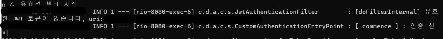 또 다른 하나는 7번과 같이 JwtAuthenticationFilter가 실행되면서 인증에 실패해 Controller가 실행되지 못했다.