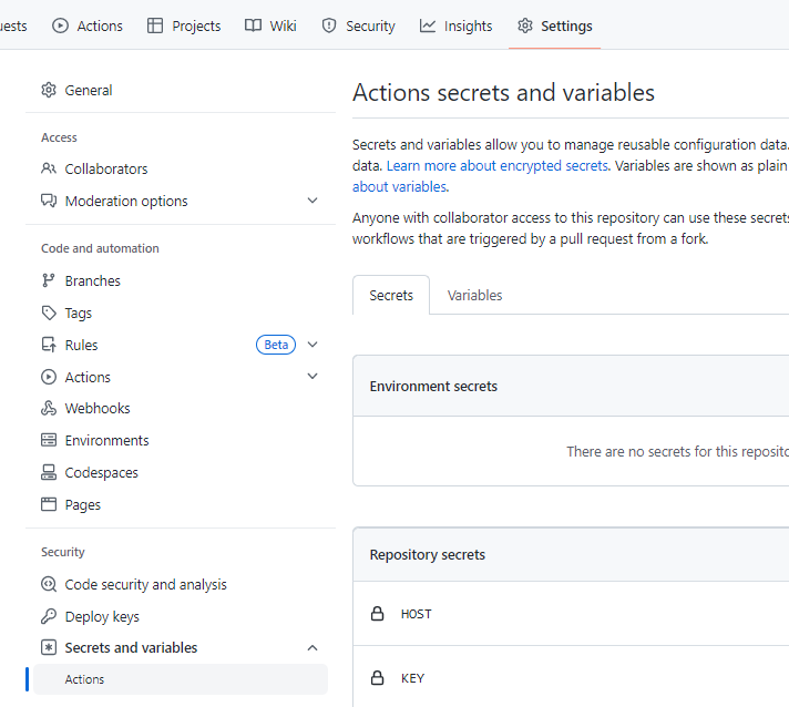 *secrets는 GitHub Secrets(깃허브 시크릿)의 약어