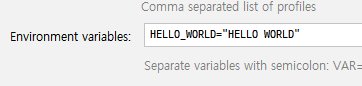 환경변수로 HELLO WORLD를 작성했기 때문에 script에도 환경변수를 작성해준다.