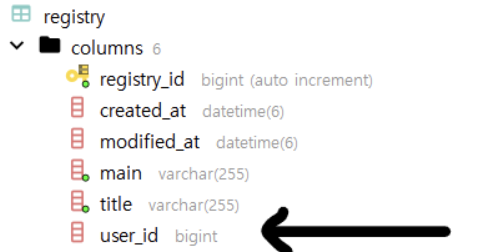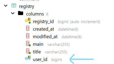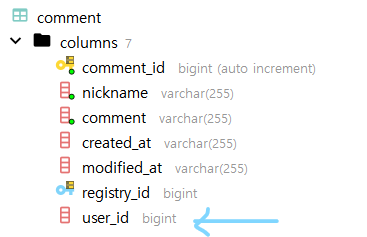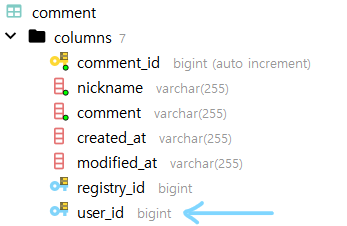 예시로 Registry대신 Comment에 user_id를 fk로 추가해봤다.