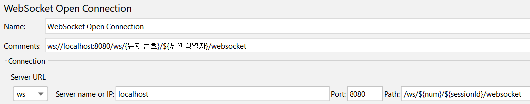 이를 Server URL에 작성하면 ws, localhost, 8080으로 작성할 수 있다.