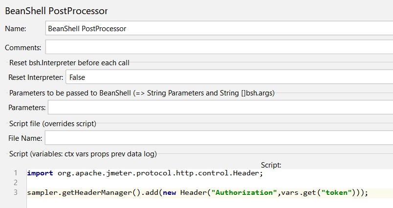 HTTP request > Add > Post Processor > BeanShell PostProcessor
