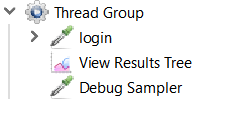 Thread Group 안에 HTTP Request, Debug Sampler, View Results Tree 추가