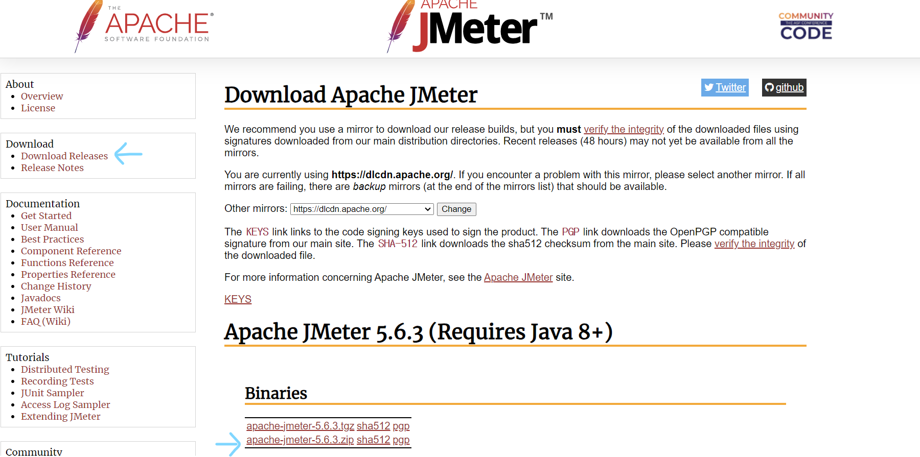 Download Release 클릭 후 나는 apache-jmeter-5.6.3.zip 다운받았다.