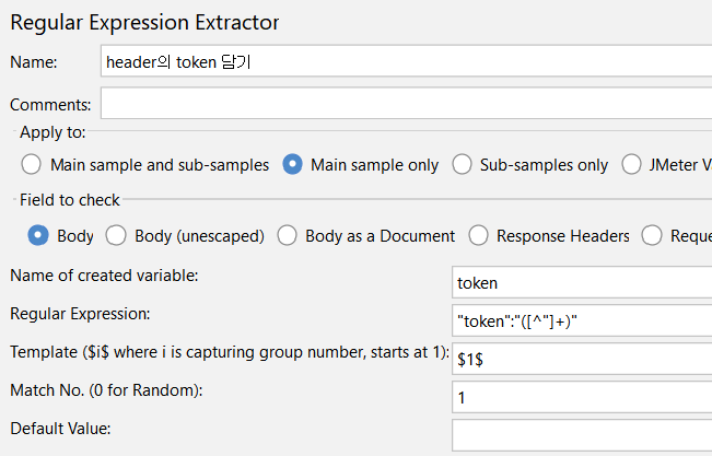 Debug Sampler에서 추출한 token 값을 넣었다.
