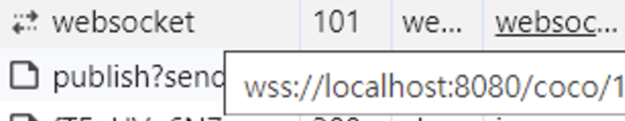 Network 탭에 들어가서 wss 적용이 되었는지 확인을 해보니 내가 설정한 wss는 엔드포인트 였다라는 것을 알게 되었다.