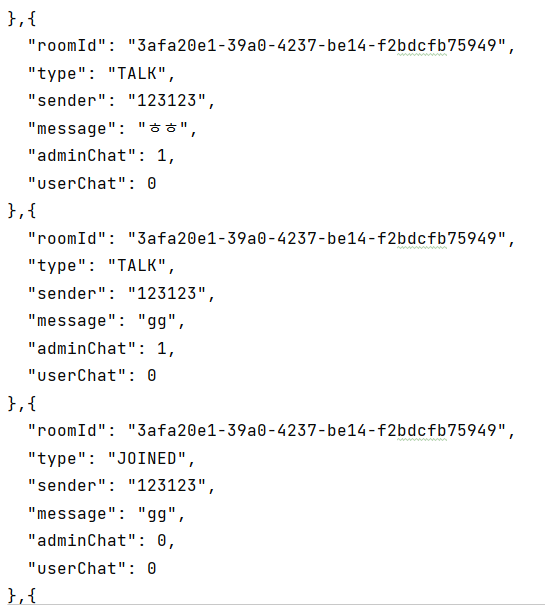 위에서 작성했던 코드는 채팅을 입력하지 않은 처음 시작할 때만 실행되고 그 이후에는 HashMap을 활용하게 했다.