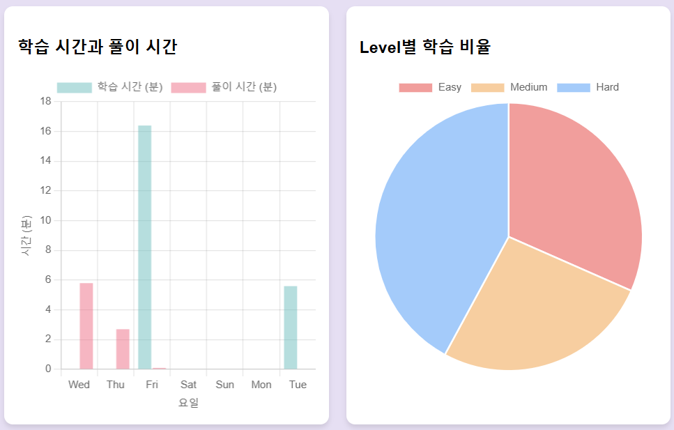 학습한 데이터를 분석해서 제공하는 MyPage를 구현하게 되었다.