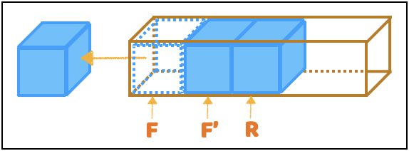 - 데이터가 나가면 front는 다음 데이터가 된다. (F -> F’)