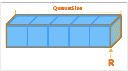 - 데이터가 들어오면 rear는 새로 들어온 데이터가 된다. (R -> R’)