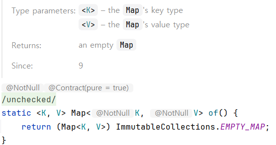 Java 9 이상부터 of()를 활용해 map을 간단하게 작성할 수 있다.