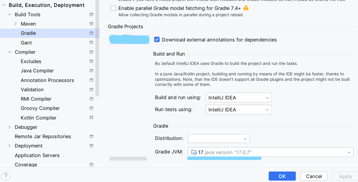 Gradle의 JVM이 Java 17이상인지 확인한다.