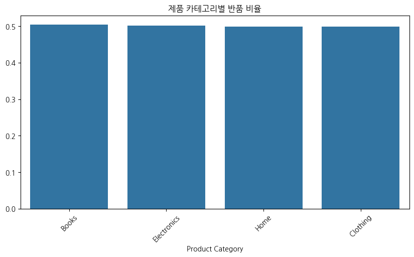 plt.title("제품 카테고리별 반품 비율")