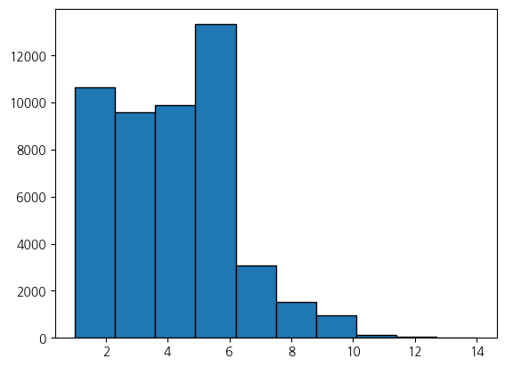 plt.hist(customer_purchase, edgecolor='black')